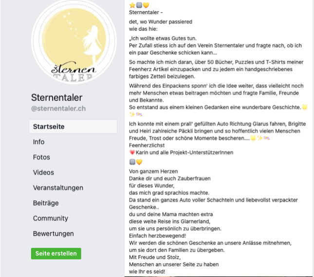 Feenherz spendet für den Verein Sternentaler Glarus